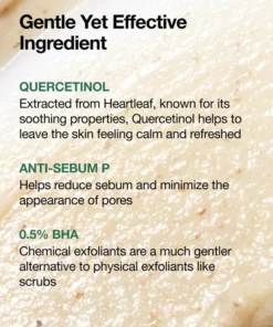 - Incluye ácidos AHA/BHA para exfoliación suave y efectiva.