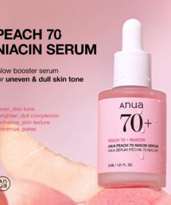 Descubre el poder transformador del ANUA Peach 70% Niacinamide Serum Iluminador, un elixir diseñado para revitalizar y embellecer tu piel. Este suero innovador combina ingredientes naturales de alta calidad con la ciencia avanzada para ofrecerte una tez radiante y uniforme.