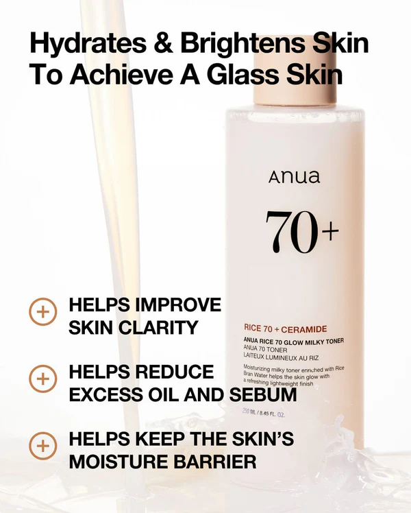 Descubre el secreto de una piel radiante y saludable con el ANUA Rice 70 Glow Milky Toner. Este tónico iluminador, inspirado en la cosmética coreana, es la solución perfecta para quienes buscan hidratar, reducir manchas e imperfecciones, y lograr un cutis luminoso y uniforme.