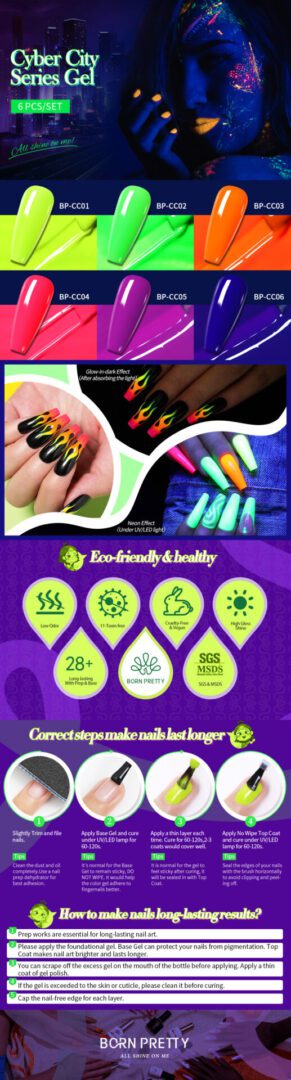 BORN PRETTY Esmaltes Permanentes Set 6 Piezas – Dark Glow #29