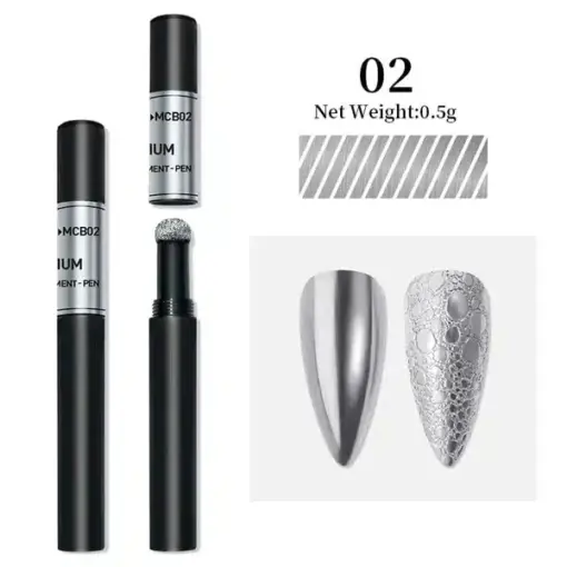 BORN PRETTY Lapiz Efecto Cromado – Air Cushion Magic Powder Chrome Pen #02 Plateado