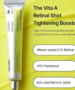 Celimax Vita A Retinol Shot Firming Booster es un tratamiento avanzado que incorpora retinal liposomado y Matrixyl, dos potentes activos reconocidos por su eficacia en el cuidado antiedad. Esta combinación actúa sobre los principales signos del envejecimiento, como arrugas, pérdida de firmeza y textura irregular.