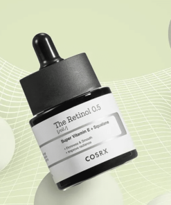 Cosrx The Retinol 0.5% es un aceite de retinol que ayuda a reducir las arrugas, y las líneas finas mientras aumenta la elasticidad de la piel y mejora el brillo natural de la tez. Con ingredientes dermatológicos, el retinol es una forma de vitamina A activa y pura que ayuda a mejorar las arrugas y la piel firme, junto a 91% de escualano calma la inflamación y protege la barrera de la piel. La súper vitamina E (tocotrienol) ayuda a combatir los signos del envejecimiento.
