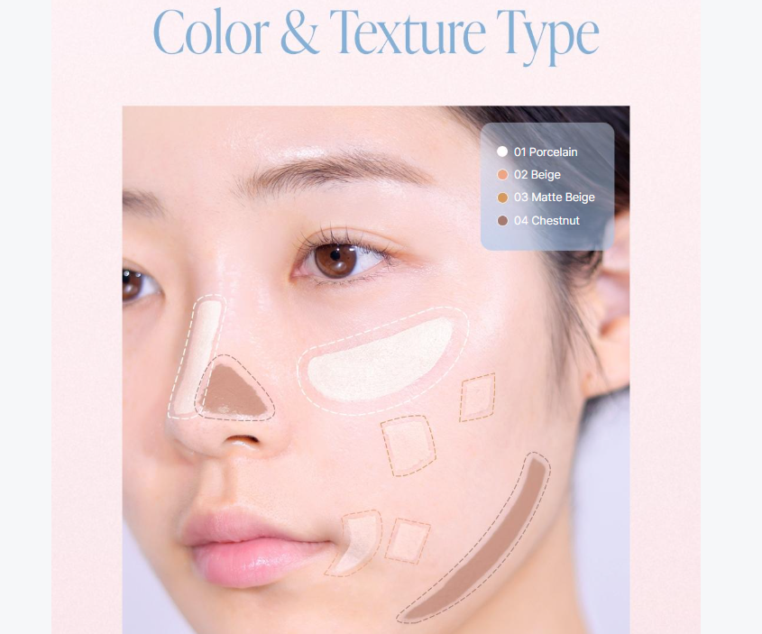 Color Porcelain: Marfil Neutro, ni subtono rojo ni amarillo. Textura fina. Recomendado para tonos de piel del 17 al 21 (en cushions o bb creams coreanas)