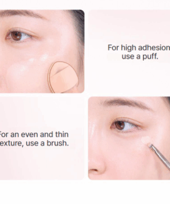 El innovador envase incorpora un orificio central de fácil apertura, que permite usarlo en cualquier momento y lugar sin complicaciones. Su textura sedosa y ligera se adhiere perfectamente a los dedos, esponjas o brochas, garantizando una aplicación suave y uniforme sin grumos.