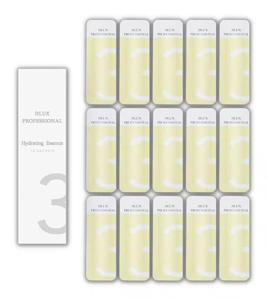 Dlux Hydrating Essence (paso 3 esencia hidratante) se utiliza para cerrar la cutícula, nutrir las pestañas y retirar los bigudies.