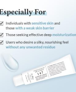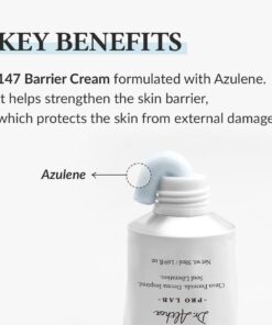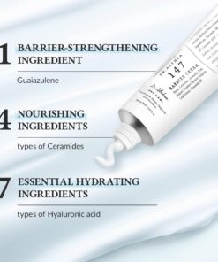 La crema 147 Barrier Cream es un producto con formulación avanzada para el cuidado de la piel, está diseñado para mejorar la barrera cutánea, nutrir la piel y proporcionar una hidratación profunda. Incorpora un ingrediente patentado, el extracto de flor de Paeonia Albiflora, junto con componentes nutritivos como el extracto de aguacate (avocado), el aceite de semilla de Argania spinosa (Argán), el aceite de semilla de Camellia sinensis (Guaiazuleno) y el tocoferol (Vitamina E).