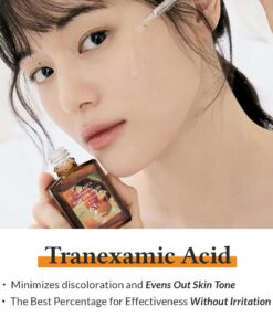 Además, el 2 % de Ácido Tranexámico atenúa las manchas oscuras y reduce la inflamación, lo que da como resultado un tono de piel visiblemente más suave y uniforme.