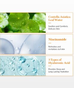 Ingredientes: Hippophae Rhamnoides Water, Centella Asiatica Leaf Water, Niacinamide, Butylene Glycol, 1,2-Hexanediol, Dipropylene Glycol, Water, Methyl Gluceth-20, Methylpropanediol, Betaine, Tranexamic Acid, Glycerin, Pentylene Glycol, Propanediol, Hydroxyethyl Urea, Laminaria Japonica Extract, Eclipta Prostrata Leaf Extract, Ficus Carica (Fig) Fruit Extract, Centella Asiatica Extract, Hydrogenated Lecithin, Sodium Hyaluronate, Carbomer, 3-O-Ethyl Ascorbic Acid, C12-14 Pareth-12, Ammonium Acryloyldimethyltaurate/Vp Copolymer, Xanthan Gum, Tromethamine, Panthenol, Ethylhexylglycerin, Adenosine, Disodium Edta, Fructooligosaccharides, Beta-Glucan, Ascorbic Acid, Hydrolyzed Hyaluronic Acid, Ceramide Np, Alpha-Arbutin, Tocopherol, Bifida Ferment Lysate, Bisabolol, Ubiquinone, Hydroxydecyl Ubiquinone, Sodium Acetylated Hyaluronate.