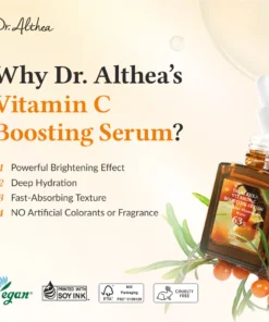 El potente serum de vitamina C de Dr. Althea es un producto imprescindible en tu rutina de cuidado de la piel, ya que cuenta con una potente combinación de ingredientes clave.
