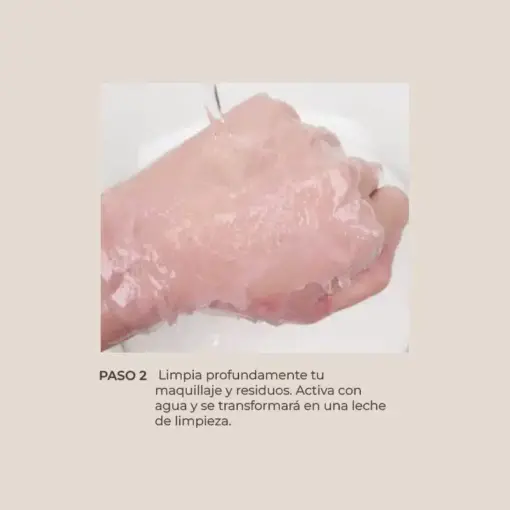 - Al entrar en contacto con el calor de la piel se convierte rápidamente en un aceite que remueve maquillaje, restos de protector solar y suciedad.