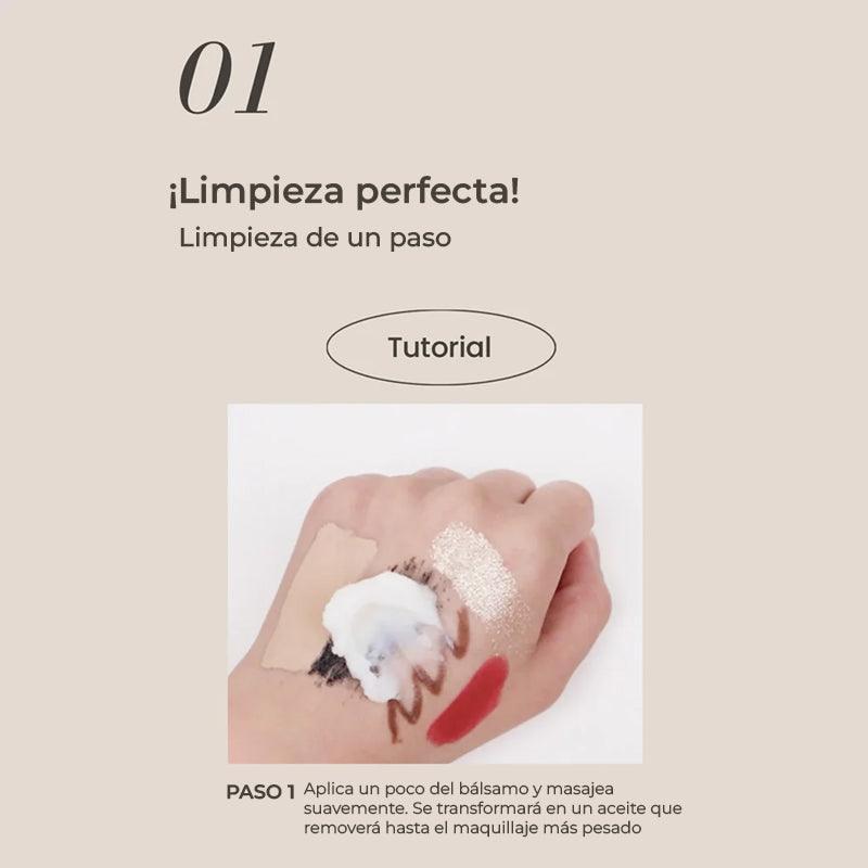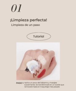Recomendaciones de uso: Toma una pequeña cantidad, masajea suavemente sobre tu piel seca, y observa cómo el bálsamo se convierte en un aceite ligero que disuelve todas las impurezas. Al enjuagar, el aceite se transforma en una emulsión lechosa que deja tu piel suave, fresca y preparada para los siguientes pasos de tu rutina de cuidado de la piel. Aclarar con abundante agua tibia y finalizar con un jabón acuoso para mejores resultados.