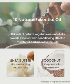 Ingredientes: Palmitato de etilhexilo, Etilhexanoato de cetilo, Triisostearato de glicerilo PEG-20, Polietileno, Isostearato PEG-8, 1,2-Hexanodiol, Manteca de karité, Acetato de tocoferilo, Aceite de cáscara de naranja, Aceite de lavanda, Aceite de flor de pelargonio graveolens, Aceite de corteza de amyris balsamifera, Aceite de hoja de eucalipto globulus, Aceite de hoja de árbol de té, Aceite de cáscara de pomelo, Aceite de fruto de bergamota, Aceite de boswellia carterii, Aceite de juniperus mexicana, Agua, Extracto de fruto de coco, Glicol de butileno, Extracto de fruto de lima, Ácido cítrico, Fenoxietanol, Extracto de flor de nelumbium speciosum, Extracto de freesia refracta, Extracto de rosa, Extracto de leontopodium alpinum, Extracto de jazmín, Extracto de flor de narciso pseudonarciso, Extracto de lirio tigrinum, Extracto de iris versicolor, Etilhexilglicerina, Limoneno, Citral, Linalool