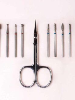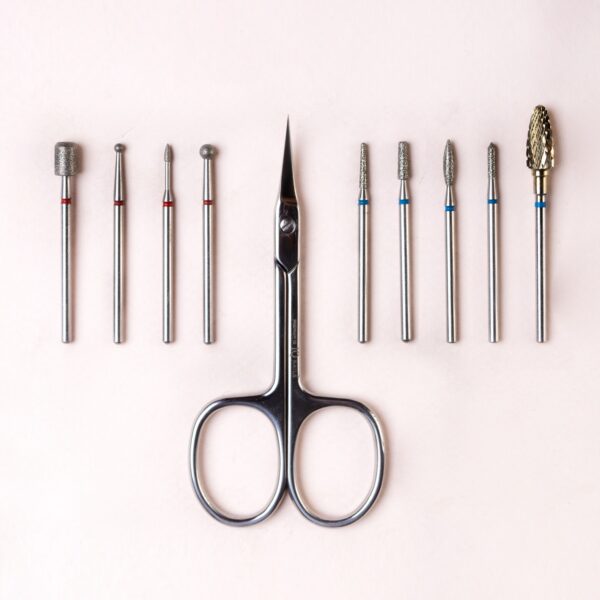 Set manicure profesional para eliminar cutículas, este kit es ideal para realizar una manicure completa ya que contiene fresas de diamante, carburo de grado médico y Tijeras profesionales para cortar cuticulas y piel .