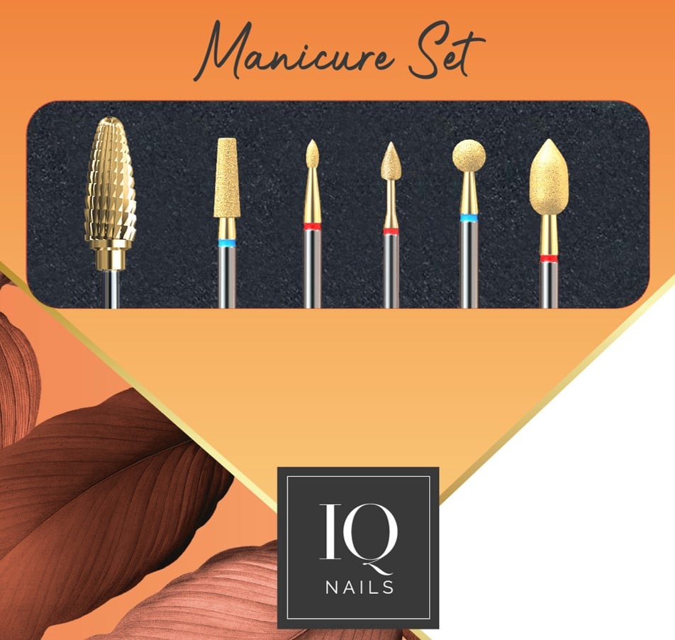 IQNAILS #5 Set de Fresas Manicure Rusa y Retiro – Expert Gold Premiun Recubierta ZRN- 6 pcs