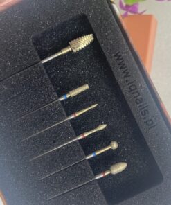 Expert Gold Power set de 6 fresas  profesionales para manicure, diseñado para realizar retiro de estructuras gel y acrílicas, además de remoción de cutículas en manicure rusa, cada una de las fresas poseen un recubrimiento especial de ZRN (Nitruro de Zirconio) dorado que permite: