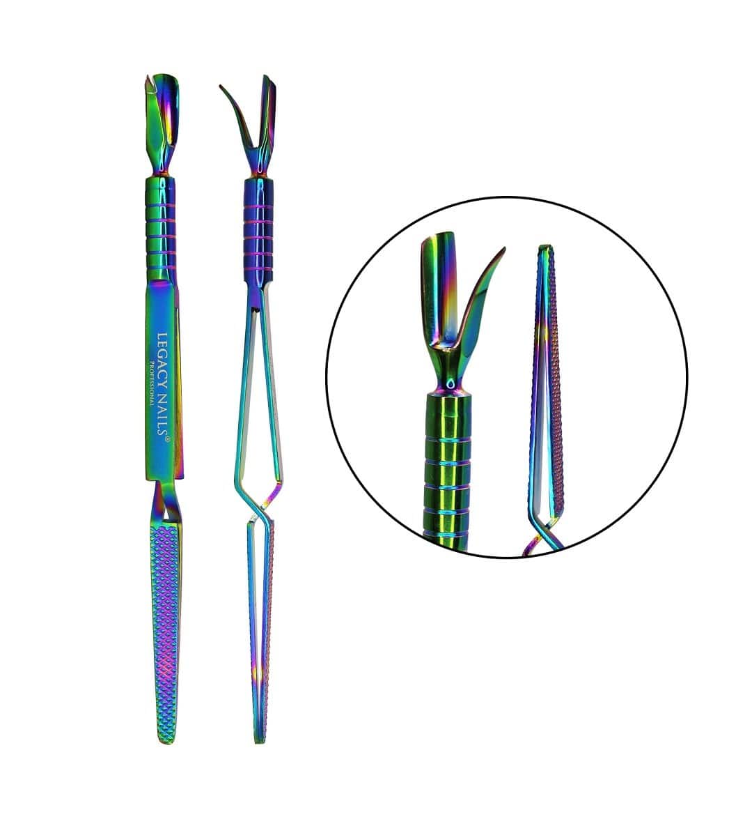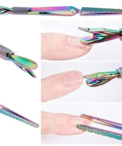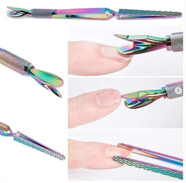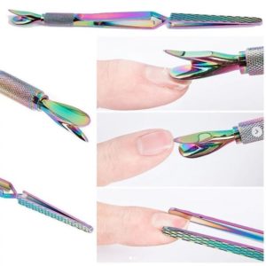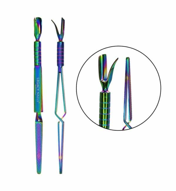 Esta es una herramienta multifuncional porque hace todo. Elimina, aprieta, empuja, pellizca, raspa y sujeta. Funciona como una herramienta de de curva C, repujador de cutícula y cortador. La curva en C es perfecta para lograr diseños de acrílico de obra maestra.