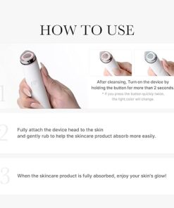 - Coloca el cabezal del dispositivo sobre tu piel y haz movimientos suaves y circulares, desde el centro del rostro hacia afuera. Continúa durante 5 a 10 minutos, o hasta que el producto se absorba por completo.
