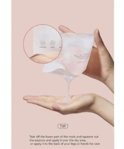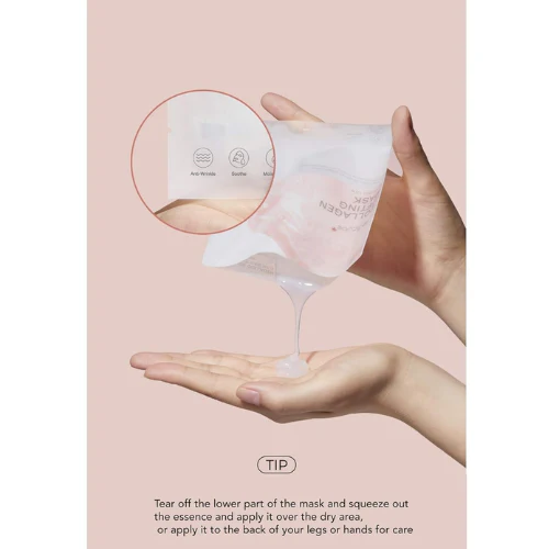 Esta mascarilla está formulada para ofrecer un efecto lifting inmediato, reduciendo la apariencia de arrugas y líneas de expresión. El colágeno y el ácido hialurónico trabajan en sinergia para hidratar profundamente la piel, mientras que los péptidos promueven la producción de colágeno natural, mejorando la firmeza y elasticidad. Para obtener los mejores resultados, aplique la mascarilla sobre el rostro limpio y seco, déjela actuar durante 15-20 minutos y luego retire suavemente, masajeando el exceso de esencia en la piel.