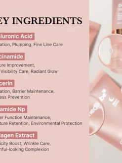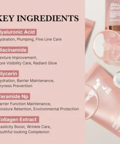Ingredientes: Water, Glycerin, Butylene Glycol, Cetyl Ethylhexanoate, C12-16 Alcohol, Niacinamide, Polyglyceryl-3 Methylglucose Distearate, Sodium Hyaluronate, Trehalose, 1,2-Hexanediol, Dipotassium Glycyrrhizate, Allantoin, Hydrolyzed Collagen, Panthenol, Beta-Glucan, Adenosine, Lactobacillus Ferment Lysate, Bifida Ferment Lysate, Saccharomyces Ferment Filtrate, Portulaca Oleracea Extract, Chamomilla Recutita (Matricaria) Flower Extract, Centella Asiatica Extract, Carbomer, Tromethamine, Ethylhexylglycerin, Disodium EDTA, Fragrance.
