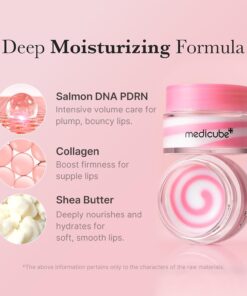 Su fórmula de hidratación profunda combina ADN de salmón PDRN, colágeno y manteca de karité, ingredientes reconocidos por su poder regenerador y su capacidad para retener la humedad, dejando los labios visiblemente más firmes, suaves y lisos.