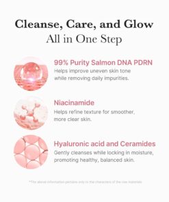 Ingredientes: Water, Glycerin, Myristic Acid, Stearic Acid, Potassium Hydroxide, Lauric Acid, Niacinamide(20,000ppm), Glyceryl Stearate SE, Glycol Distearate, Palmitic Acid, Cocamidopropyl Betaine, Potassium Cocoyl Glycinate, Sodium Polyacrylate, Sorbitan Olivate, Sorbitol, Allantoin, Potassium Cocoate, Polyquaternium-10, Sodium Chloride, Polyquaternium-7, Butylene Glycol, Caprylyl Glycol, Acrylates/C10-30 Alkyl Acrylate Crosspolymer, Tetrasodium EDTA, Anthemis Nobilis Flower Oil, Pyrus Communis (Pear) Fruit Extract, Rosa Damascena Flower Water, Prunus Persica (Peach) Fruit Extract, Thuja Orientalis Extract, Cyanocobalamin, Jasminum Officinale (Jasmine) Flower Water, Citrus Aurantium Amara (Bitter Orange) Flower Extract, Rosmarinus Officinalis (Rosemary) Leaf Oil, Cucumis Melo (Melon) Fruit Extract, Hedera Helix (Ivy) Leaf/Stem Extract, 1,2-Hexanediol, Panthenol, Sodium DNA(50ppm), Sodium Benzoate, Coptis Chinensis Root Extract, Ethylhexylglycerin, Gluconolactone, Glutathione, Capryloyl Salicylic Acid, Salicylic Acid, Caprylic/Capric Triglyceride, Adansonia Digitata Seed Oil, Hydrogenated Lecithin, Pentylene Glycol, Ceramide NP, Madecassoside, Corchorus Olitorius Leaf Extract, Carum Petroselinum (Parsley) Extract, Hibiscus Esculentus Fruit Extract, Decyl Glucoside, Dimethylsilanol Hyaluronate, Hydrolyzed Hyaluronic Acid, Hydrolyzed Sodium Hyaluronate, Sodium Hyaluronate, Potassium Hyaluronate, Hyaluronic Acid, Ceramide AS, Ceramide NS, Hydroxypropyltrimonium Hyaluronate, Sodium Hyaluronate Crosspolymer, Sodium Hyaluronate Dimethylsilanol, Ceramide AP, Ceramide EOP, Sodium Acetylated Hyaluronate