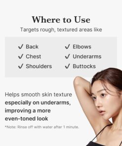 Recomendaciones de uso: Aplicar sobre la piel seca antes de la ducha sobre la zona a tratar como los hombros, la espalda, glúteos, codos, pecho, etc. Dejar actuar durante un minuto y aclarar con abundante agua. Utilizar 2-3 veces por semana o según sea necesario.
