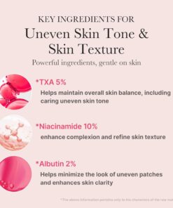 Water, Niacinamide(100,000ppm), Glycerin, Butylene Glycol, Tranexamic Acid(50,000ppm), Arbutin, Diethoxyethyl Succinate, Chlorphenesin, C12-14 Alketh-12, Ethylhexylglycerin, Xanthan Gum, Carbomer, Adenosine, Disodium EDTA, Melia Azadirachta Leaf Extract, Melia Azadirachta Flower Extract, 1,2-Hexanediol, Panthenol, Cyanocobalamin, Betaine, Coccinia Indica Fruit Extract, Rosa Centifolia Flower Oil, Ferulic Acid, Corallina Officinalis Extract, Pentylene Glycol, Glutathione, Hydrolyzed Hyaluronic Acid, Hydrolyzed Sodium Hyaluronate, Dimethylsilanol Hyaluronate, Hyaluronic Acid, Potassium Hyaluronate, Sodium Hyaluronate, Hydroxypropyltrimonium Hyaluronate, Sodium Hyaluronate Crosspolymer, Sodium Hyaluronate Dimethylsilanol, Sodium Acetylated Hyaluronate, Acetyl Tetrapeptide-5, Hexapeptide-9, Palmitoyl Tripeptide-5