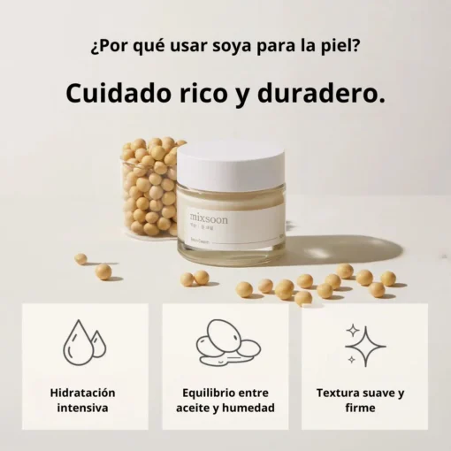 La MIXSOON Bean Cream mejora la elasticidad de la piel, reduciendo visiblemente los signos de fatiga y envejecimiento. Su fórmula rica en nutrientes hidrata intensamente, proporcionando un brillo natural y uniforme. Úsala diariamente para experimentar una piel más suave y revitalizada.