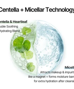 Este agua limpiadora está formulada con ingredientes naturales como Centella Asiática (Cica), Aloe Vera y Hamamelis para ayudar a calmar y proteger la piel mientras la limpia. Absorbe los residuos y deja la piel hidratada después de la limpieza, dejándola con una sensación agradable y confortable. Formulada con un pH suave para proteger la piel.