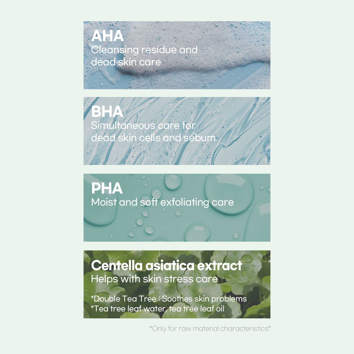 Ingredientes: Water, Butylene Glycol, Dipropylene Glycol, Glycerin, 1,2-Hexanediol, Niacinamide, Melaleuca Alternifolia (Tea Tree) Leaf Water (11,760 Ppm), Centella Asiatica Extract (11,640 Ppm), Glyceryl Glucoside, C12-14 Alketh-12, Panthenol, Sodium Citrate, Allantoin, Dipotassium Glycyrrhizate, Ethylhexylglycerin, Disodium EDTA, Glucose, Xanthan Gum, Melaleuca Alternifolia (Tea Tree) Leaf Oil (195 Ppm), Citric Acid, Betaine Salicylate, Gluconolactone, Sodium Hyaluronate.