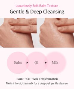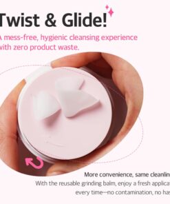 Formato bien diseñado para controlar la cantidad que se necesita y tomar el producto sin tener que usar una espátula, solo debes girar la parte de arriba. Este limpiador tipo manteca se convierte en aceite y después se hace una textura lechosa, dejando la piel fresca e hidratada.