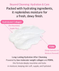 Enriquecido con Colágeno de tamaño molecular pequeño de Francia y PDRN que nutre la piel, proporciona humedad y previene la deshidratación después de la limpieza. Probado en pieles irritadas.