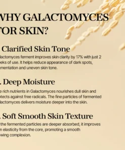 La esencia Galactomyces Ferment Essence está formulada con alta concentración de filtrado de fermentación Galactomyces. Esta esencia ligera ayuda a unificar el tono de la piel, mejorando la textura mientras brinda un aspecto saludable. Proporciona hidratación y ayuda a mantener la piel suave y fresca. Reduce el enrojecimiento, la sequedad y restaura el brillo natural del rostro. Ayuda a controlar la hiperpigmentación y mejora las marcas post-acné.