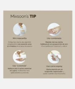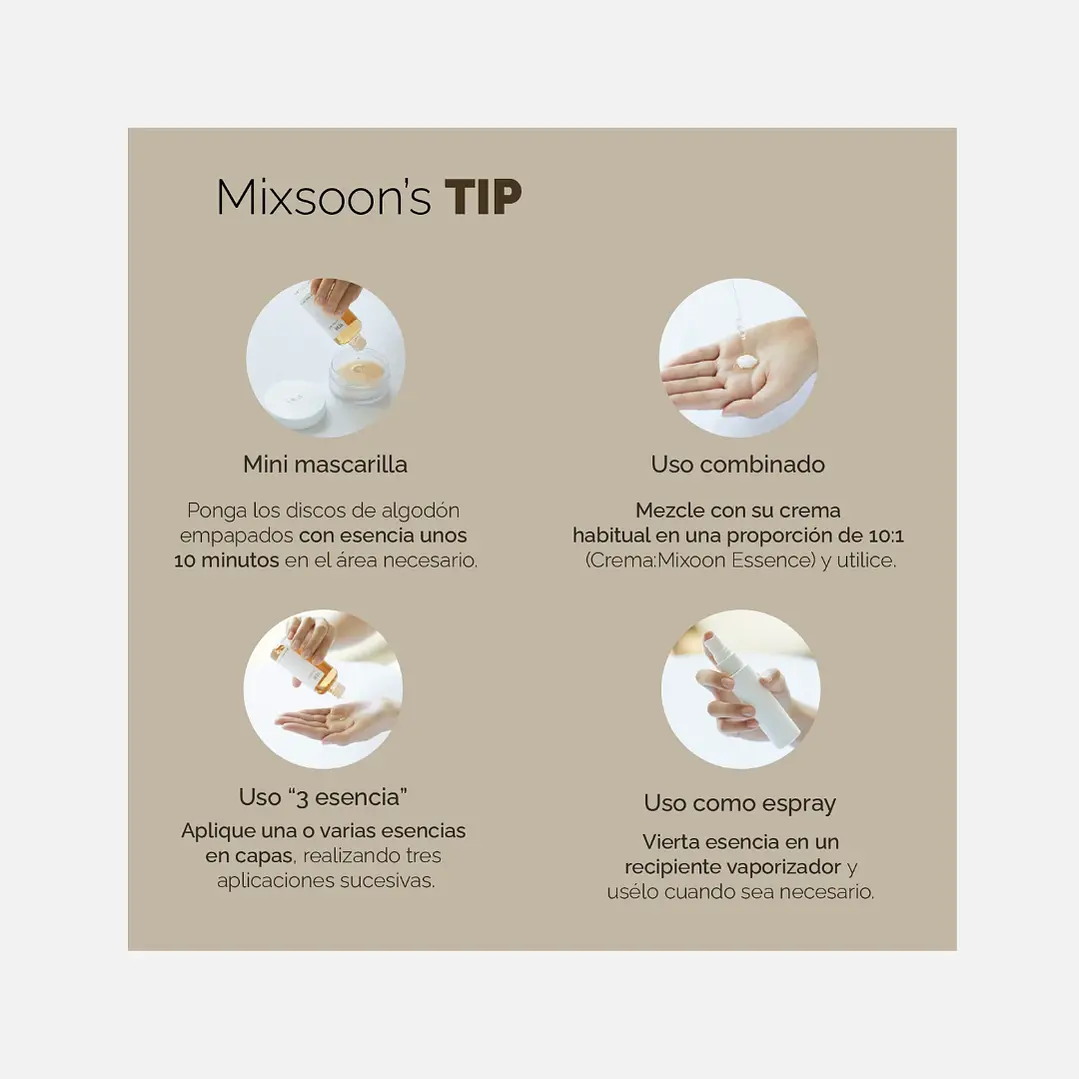 Recomendaciones de uso: Después de la limpieza facial, aplicar una cantidad adecuada de la esencia sobre el rostro. Dar suaves toques hasta su completa absorción. Uso de día y/o noche.