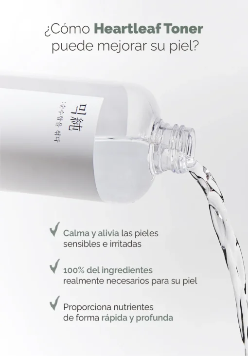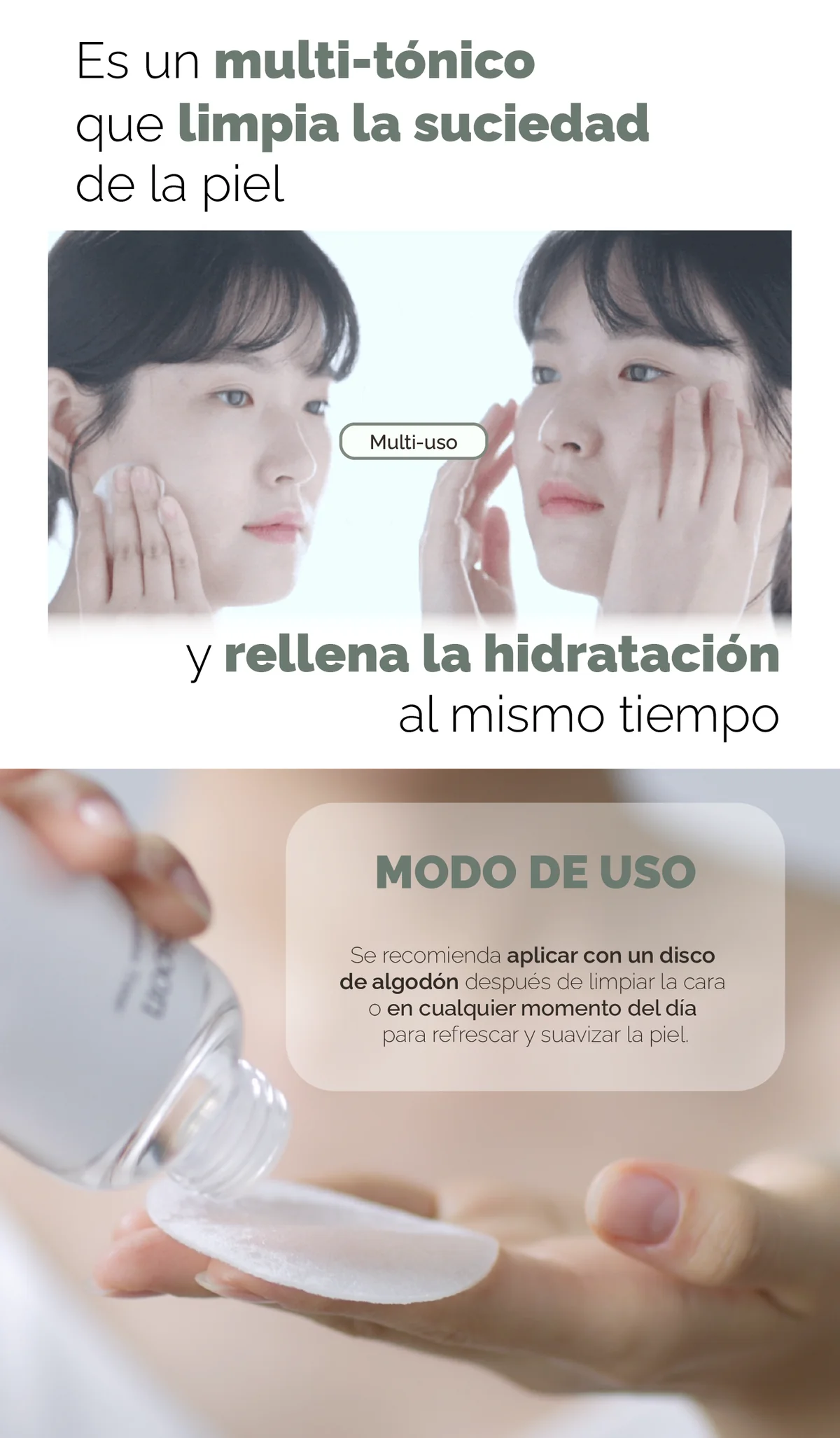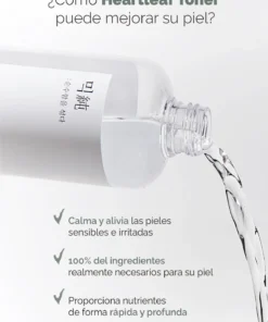 - Formulación con extracto de heartleaf (Houttuynia cordata), conocido por sus propiedades antiinflamatorias y calmantes.