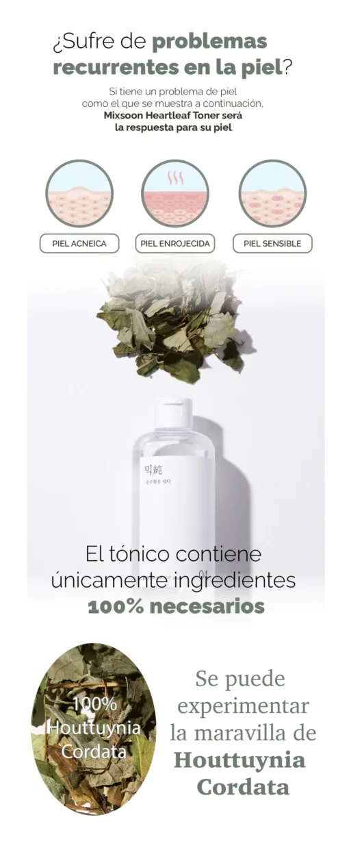 Con el MIXSOON Heartleaf Toner, experimentarás una piel más calmada y equilibrada, lista para enfrentar los desafíos del día a día.