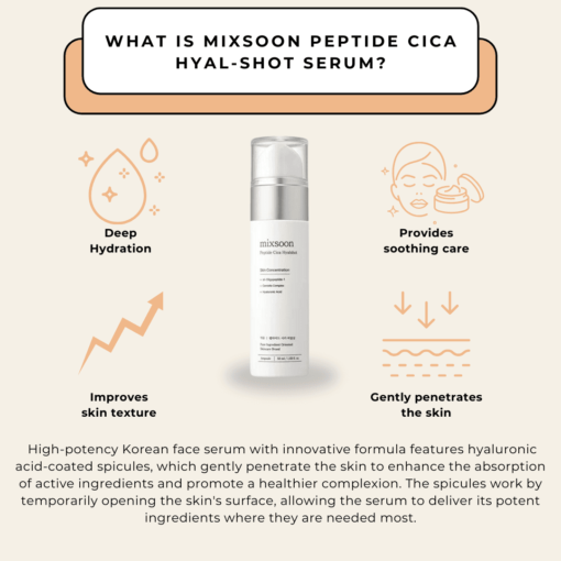 Descubre el secreto de una piel más firme y rejuvenecida con el MIXSOON Peptide Cica Hyalshot Serum Antiedad 50 ml. Este suero avanzado combina lo mejor de la ciencia coreana en cuidado facial para ofrecer resultados visibles y duraderos. Ideal para quienes desean combatir los signos del envejecimiento y obtener una piel más saludable.