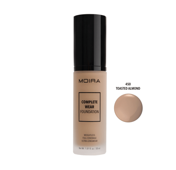Moira Base maquillaje #450 Toasted Almond – Alta Cobertura