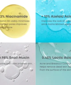 Ingredientes: Water, Glycerin, Propanediol, Azelaic Acid, Niacinamide, 1,2-Hexanediol, Centella Asiatica Extract, Panthenol, Allantoin, Dipotassium Glycyrrhizate, Sodium Hyaluronate, Betaine, Butylene Glycol, Ethylhexylglycerin.
