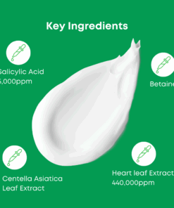 Ingredientes: Houttuynia Cordata Extract(440,000ppm), Glycerin, Myristic Acid, Water, Lauric Acid, Palmitic Acid, Stearic Acid , Potassium Hydroxide, Glyceryl Stearate, Decyl Glucoside, Cocamidopropyl Betaine, Sorbitan Olivate, 1,2-Hexanediol, Salicylic Acid(5,000ppm), Dipropylene Glycol, Lauramide DEA, Hydroxyacetophenone, Sodium Chloride, Caprylyl Glycol, Betaine, Capric Acid, Salix Alba (Willow) Bark Extract, Cladosiphon Okamuranus Extract, Centella Asiatica Leaf Extract, Camellia Sinensis Leaf Extract, Disodium EDTA, Arachidic Acid, Coffea Arabica (Coffee) Seed Extract, Citrus Aurantium Bergamia (Bergamot) Leaf Extract, Pinus Densiflora Leaf Extract, Dipotassium Glycyrrhizate