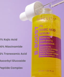 Descubre el poder transformador del NINELESS B-BOOST 1% Kojic Acid Serum 30 ML, un serum despigmentante intensivo diseñado para revelar una piel más uniforme y radiante. Ideal para quienes buscan combatir manchas e imperfecciones, este producto es un esencial en tu rutina de cuidado facial, especialmente formulado para piel mixta y grasa.