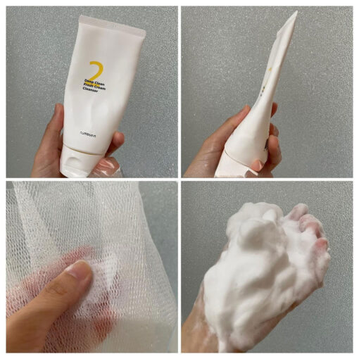 • Una espuma limpiadora con abundante espuma diseñada para extraer y eliminar los desechos de los poros, como el sebo y los residuos de maquillaje.