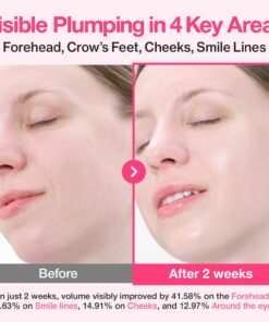 Clínicamente probado para mejorar la firmeza y elasticidad de la piel, especialmente en áreas propensas a la pérdida de volumen, como las mejillas, la frente, los pliegues naso labiales y el área debajo de los ojos.