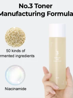 Tónico mas vendido de la marca Numbuzin , formulado con 50 ingredientes fermentados que prepara la piel para los siguientes pasos de la rutina de cuidado facial y que ofrece todas las propiedades nutritivas de una esencia. Fórmula revitalizante que ilumina y reafirma la piel opaca y cansada, mientras suaviza las arrugas y líneas finas.  Luminosidad, brillo y elasticidad para tu piel con un solo producto. Se trata de un tóner que potencia el glow de la piel, la fuerza natural de la tez y mejora drásticamente su tono y textura.