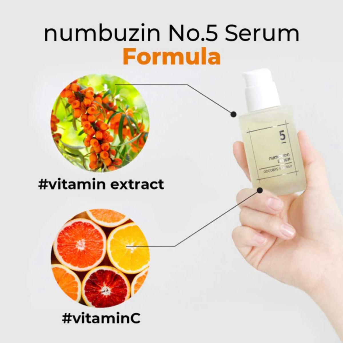 Hippophae Rhamnoides Extract, Butylene Glycol, Methyl Gluceth-20, Dipropylene Glycol, Glycerin, 1,2-Hexanediol, Niacinamide, Melia Azadirachta Flower Extract, Ocimum Sanctum Leaf Extract, Melia Azadirachta Leaf Extract, Curcuma Longa (Turmeric) Root Extract, Corallina Officinalis Extract, Citrus Limon (Lemon) Peel Oil, Citrus Aurantium Dulcis (Orange) Peel Oil, Citrus Aurantifolia (Lime) Oil, Polygonum Cuspidatum Root Extract, Scutellaria Baicalensis Root Extract, Camellia Sinensis Leaf Extract, Glycyrrhiza Glabra (Licorice) Root Extract, Chamomilla Recutita (Matricaria) Flower Extract, Rosmarinus Officinalis (Rosemary) Leaf Extract, Centella Asiatica Extract, Ascorbyl Glucoside, Ascorbic Acid, 3-O-Ethyl Ascorbic Acid, Panthenol, Sodium Hyaluronate, Dipotassium Glycyrrhizate, Glycereth-26, Ammonium Acryloyldimethyltaurate/VP Copolymer, Polyglyceryl-10 Laurate, Carbomer, Allantoin, Tromethamine, Purified Water, Hydrolyzed Jojoba Esters, Disodium EDTA, Citral, Limonene