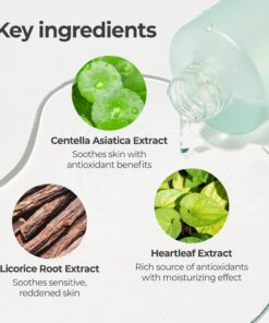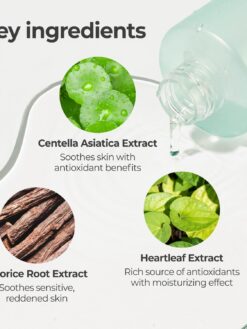 • Este tónico ayuda a calmar la piel y restaurar el equilibrio agua-aceite dentro de la piel con houttuynia cordata, cica y extracto de raíz de regaliz.