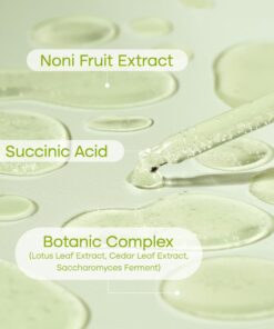 Ingredientes: Water, Butylene Glycol, Pentylene Glycol, Dipropylene Glycol, Propanediol, Morinda Citrifolia Fruit Extract, Succinic Acid, Cryptomeria Japonica Leaf Extract, Panthenol, Coptis Chinensis Root Extract, Nelumbo Nucifera Leaf Extract, Saccharomyces Ferment, Glycerin, Betaine, Caprylyl Glycol, Acrylates/C10-30 Alkyl Acrylate Crosspolymer, Arginine, Hydroxyacetophenone, Cetearyl Olivate, Dipotassium Glycyrrhizate, Allantoin, 1,2-Hexanediol, Sorbitan Olivate, Malachite Extract, Ethylhexylglycerin, Xanthan Gum, Disodium EDTA, Citric Acid, Gluconic Acid
