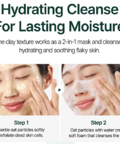 Enriquecido con agua de semillas de avena de Gunsan, ingrediente reconocido por su alta capacidad calmante y humectante, este limpiador contribuye a restaurar el equilibrio hídrico de la piel, siendo especialmente adecuado para pieles secas, sensibles o reactivas. Su textura cremosa, de inspiración arcillosa, permite además su uso como mascarilla de tratamiento, potenciando la hidratación y el confort cutáneo.