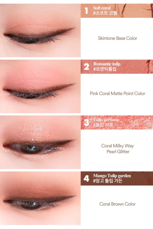 - Incluye cuatro tonos versátiles inspirados en los tulipanes: Soft Coral, Romantic Tulip, Tulip Perfume y Mango Tulip Garden.